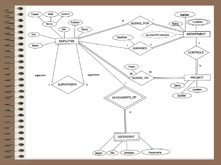 Step 4: Mapping of Binary 1: N Relationship Types • For each regular binary 1: N relationship R, identify the relation S (the N-side of the relationship). • Include as foreign key in S the primary key of the relation T (the other entity participating in R). • Include any simple attributes of the 1: N relation type as attributes of S. • E. g. : 1: N relationship types WORKS_FOR, CONTROLS, and SUPERVISION in the schema. – For WORKS_FOR we include the primary key DNUMBER of the DEPARTMENT relation as foreign key in the EMPLOYEE relation (and call it DNO).