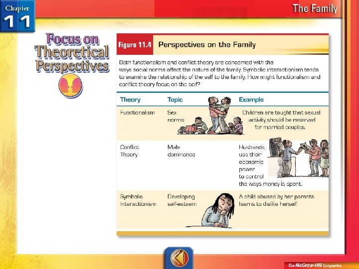 Chapter Preview · Section 2 Theoretical Perspectives and the Family (pages 357– 362) The family is the very core of human social life. It is not surprising that each of the major perspectives focuses on the family. Functionalism emphasizes the benefits of the family for society. The conflict perspective looks at why males dominate in the family structure. Symbolic interactionism studies how the family socializes children and promotes the development of self-concept.