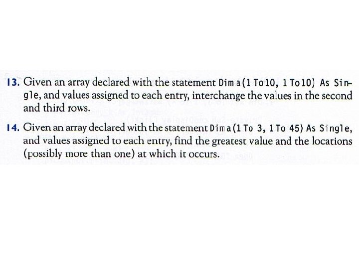 • How many elements are in the array declared by • Dim my. Array(1 To 5, 1 To 5) As Single • How many elements are in the array declared by • Dim my. Array(0 To 3, 1 To 3) As Single
