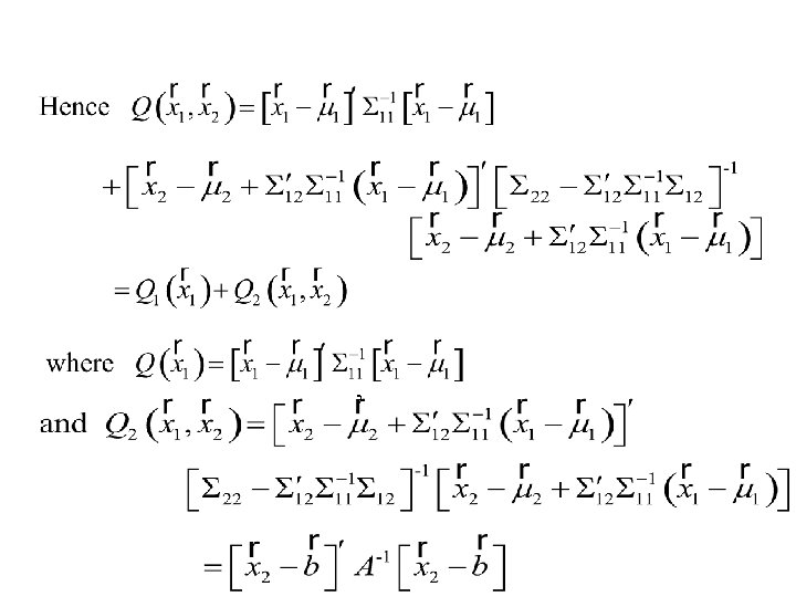 Summary – Distribution Theory for Multivariate Normal • Marginal distribution • Conditional distribution
