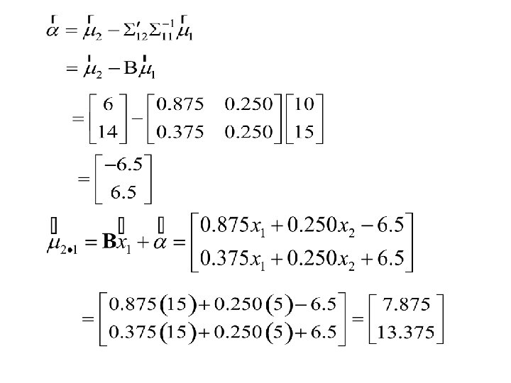 Thus the conditional distribution of given is bivariate Normal with mean vector And partial covariance matrix