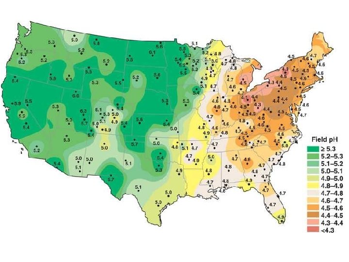 Acid Rain • Type of precipitation produced when pollutants in the water cycle cause the rain p. H to drop below normal levels (5. 6) • Caused by factories releasing Sulfur dioxide (SO 2) and Nitrous oxide (NOx) • Rain falls down at p. H’s of as low as 4 • Nitric acid and sulfuric acid • Acid rain pours down and destroys plants and structures