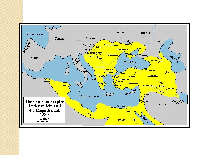 Ottoman Empire • Turkish people • Fall of Mongols leads to rise of Ottoman Turks (1300) • Conquer Constantinople in 1453 - now involved in sea economy- renamed Istanbul • Continue to expand over 200 yrs. Conquer largest empire since Abbasid caliphate- used innovation and new technology • Culturally and ethnically diverse empire • Take Hungary and almost take Austria • Who was the Ottoman’s most significant rival for power in Central Asia?