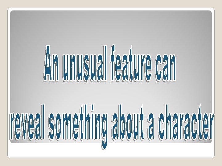 Characterisation What unusual feature does this man have? Using this feature write a few sentences to reveal something of the man’s personality.