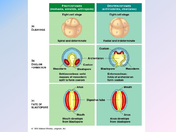Patterns of Embryological Development • At first this digestive tract has only a single opening. However, an efficient digestive tract needs two openings.