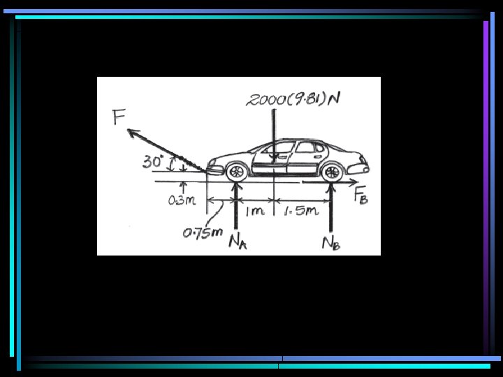 Home Work: The automobile has a mass of 2 Mg and center of mass at G. Determine the towing force F required to move the car if the back brakes are locked, and the front wheels are free to roll. Take s = 0. 3. Ans: F = 2. 76 k. N