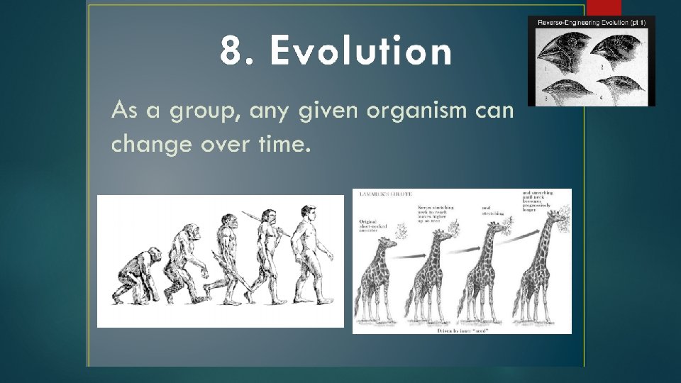 Living Things Evolve For example, Dinosaurs with feathers - In northern China, evidence was found of feathered dinosaurs that did not fly. The feathers may have been for insulation or looks, but not for flying.