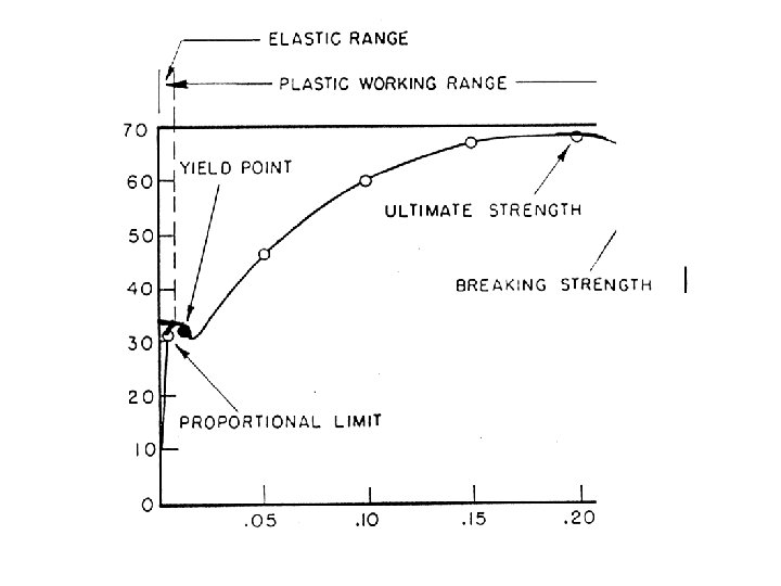 Mechanical Properties Terms Relative to Tensile Strength (Resistance to the act of pulling apart. ) w Stress - The load pressure (measured in 1000 psi) of a metal before it stretches. w Strain - Elongation that occurs during the pulling action. w Yield Point - Amount of force required to stretch the metal until it is permanently deformed.