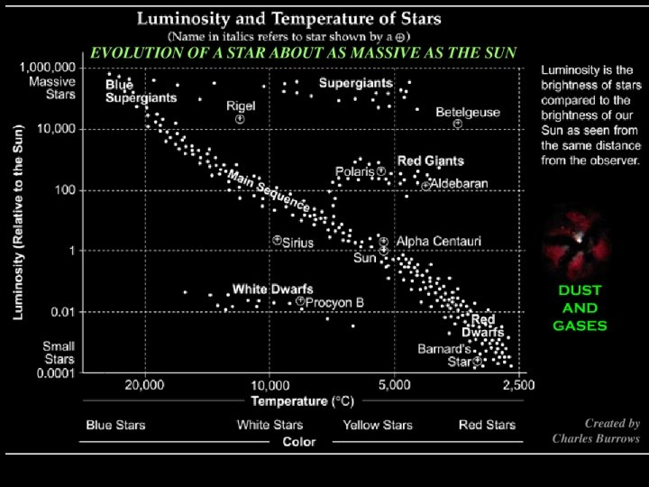 LIFE CYCLE OF STARS SUN-LIKE STARS STELLAR NURSERY RED GIANT PLANETARY NEBULA WHITE DWARF BLACK DWARF (UP TO 1. 5 X MASS OF OUR SUN) MASSIVE STARS RED SUPERGIANT SUPERNOVA NEUTRON STAR (1. 5 – 3 X OUR SUN) STARS FORM IN A NEBULA OF GAS & DUST SUPERMASSIVE STARS > 3 X OUR SUN RED SUPERGIANT SUPERNOVA BLACKHOLE