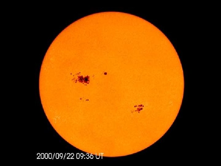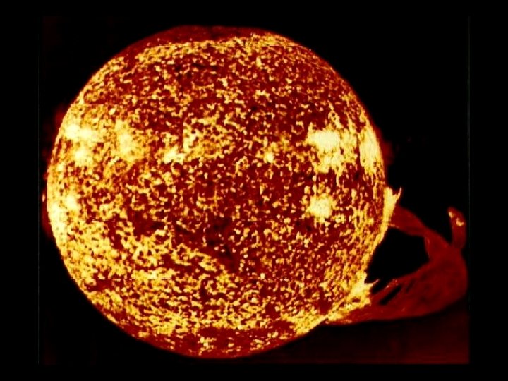 Sunspots & Prominences • Sunspots are regions of intense magnetic fields • Sunspot temperatures are cooler than the photosphere, which makes them appear as dark spots • Prominences are regions along a magnetic field line where conditions are right for light to be emitted • Huge, arching columns of gas often