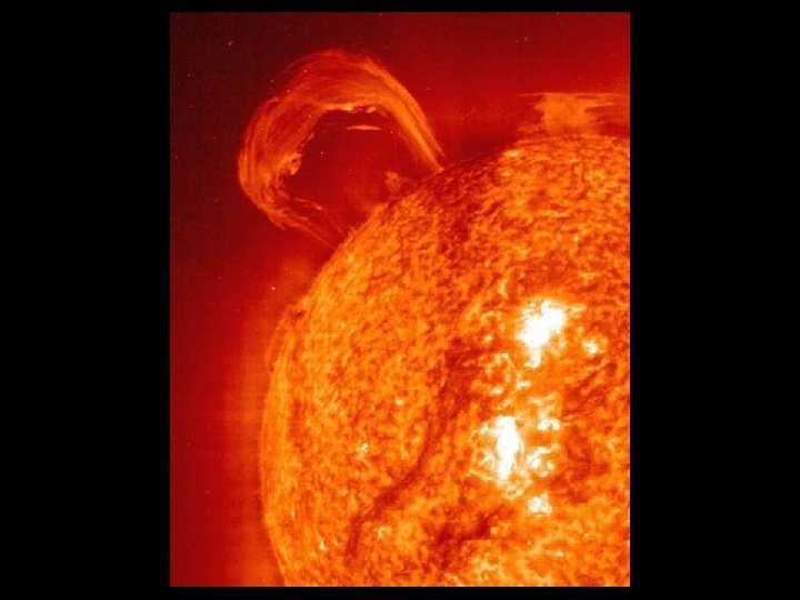 Solar Flares • Occasionally, kinks and stresses occur on magnetic field lines discharging amounts of energy (known as Solar Flares) • The amount of energy released is equivalent to a 2 billion megaton bomb • Flares release large numbers of particles into the corona