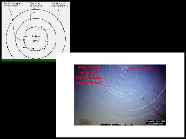 Circumpolar Constellations • Because of the Earth’s rotation, the constellations appear to move • If the constellations appear to move around Polaris, they are called circumpolar constellations – The constellations Ursa Major and Minor are both circumpolar constellations • Using time exposure photography, the apparent motion of the stars around Polaris can be recorded as circular trails