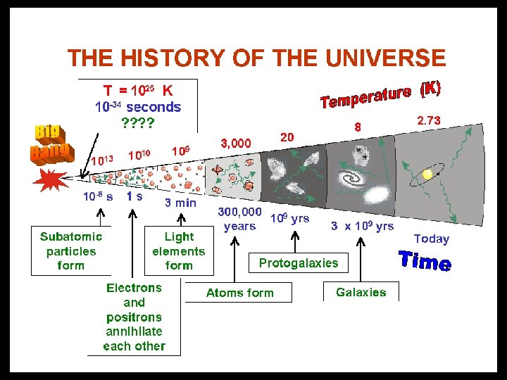 Galaxy Formation • The formation of all the galaxies is explained by the Big Bang Theory • Simply put, it states that the universe was a big ball of hydrogen gas that exploded outward • The expanding cloud had areas that condensed into galaxies that are still expanding out from the center (the universe is getting larger) – We can see this with RED SHIFT!