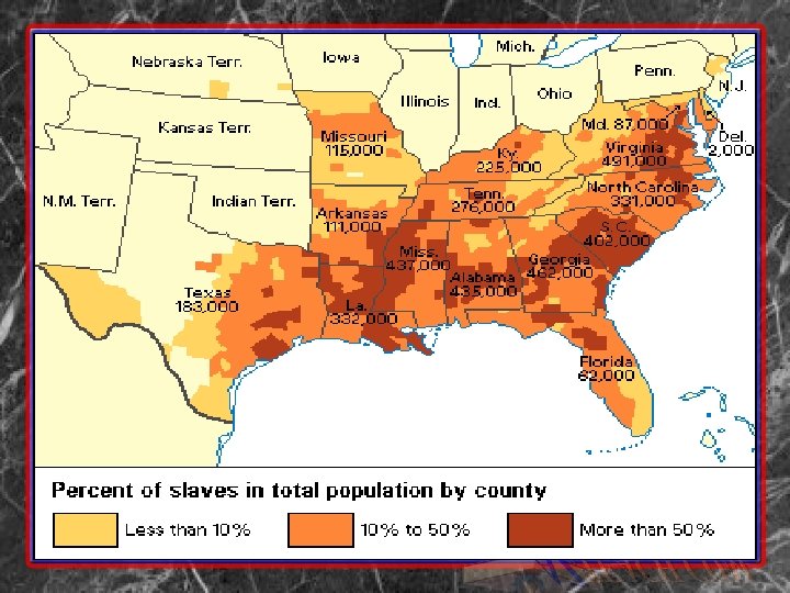 Slave Population • 1790 fewer than 700, 000 • 1830 more than 2 million • by 1860 nearly 4 million - 10% reported of mixed race (mulatto) • one of fastest growing elements of American life