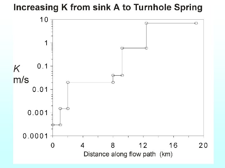 Differences between karst aquifers and porous media • • • Tributary flow to springs Flow in channels with high Re Troughs in the potentiometric surface Downgradient decrease in i Downgradient increase in K Substantial scaling effects