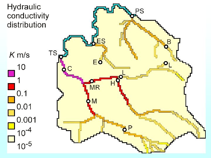 Hydraulic conductivity data • • Matrix Slug tests (geo. mean) Slug test (arith. mean) Pumping tests • MODFLOW (EPM) 2 x 10 -11 m/s 6 x 10 -6 m/s 3 x 10 -5 m/s 3 x 10 -4 m/s 1 x 10 -3 m/s