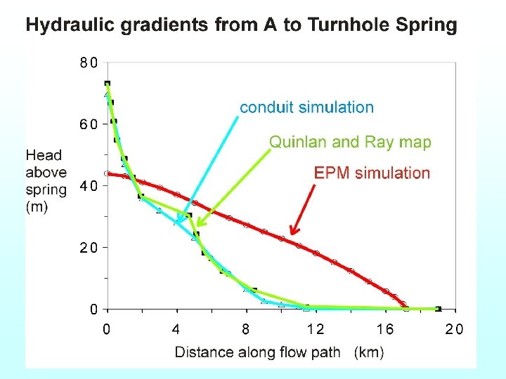 Results of MODFLOW with “conduits cells” • Head error reduced from 11 m to 4 m • Tracer paths accurately shown • Model reasonable for steady-state • Poor performance for transient (hours) • Poor performance for transport • No good codes available for karst aquifers