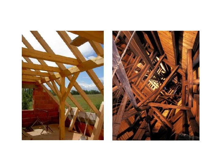 Sedlová střechy - krov Volbu konstrukce krovu ovlivňuje zejména sklon střechy, její tvar, rozpětí, volná šířka i výška, účel budovy a prostředí. Každá krovová konstrukce má zatěžovat podpory svisle, proto je nutno šikmé tlaky zachytit (vazní trám, kleštiny, kovová táhla). Konstrukce krovu musí být náležitě tuhá (zavětrovaná) v příčném i podélném směru.
