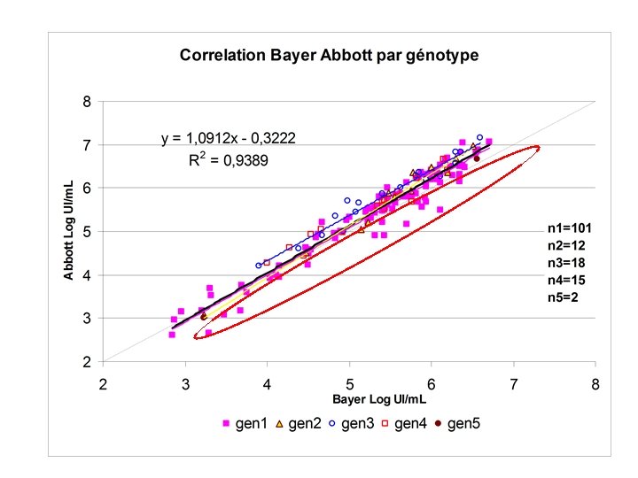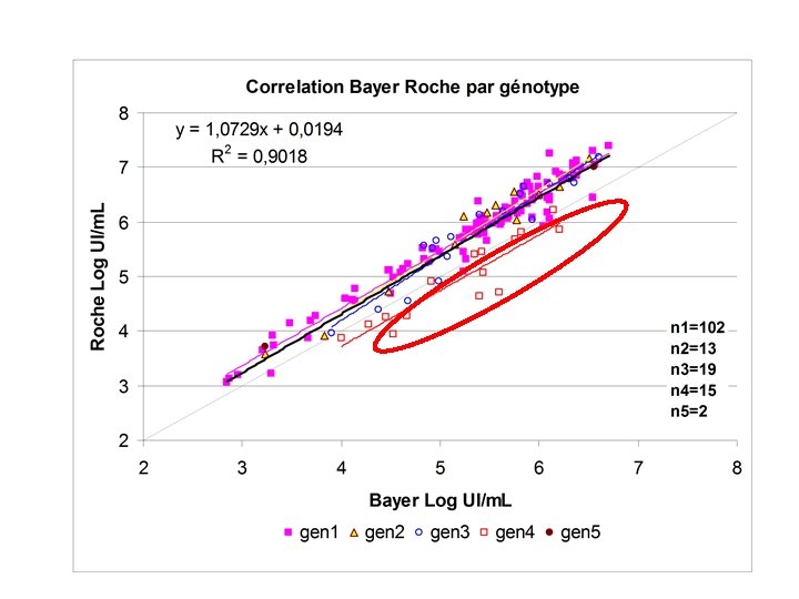Conclusion (2) Real. Time HCV (Abbott) Praticabilité moyenne +Sensibilité excellente : 20 UI/ml Sous évaluation de certains génotypes 1 (8%) Coût trop élevé Taqman HCV (Roche Diagnostics) Praticabilité bonne ++ Sensibilité excellente : 25 UI/ml Sous évaluation des génotypes 4