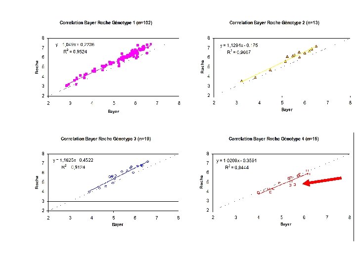 Design de l’étude 200 sérums HCV (ARN HCV positif) recrutement habituel de l’Unité (naïfs, traités, rechuteurs, répondeurs ou non) Contraintes – quantité de sérum > 3 ml (certaines repasses ont été diluées) – absence de « gold standard » (technique de routine b. DNA)
