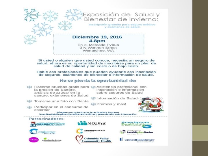 Charity Care Outreach • Tony Gonzalez • Columbia Legal Services, Wenatchee • Problem: so few patients, community members and social service providers know about charity care, especially in rural areas and immigrant communities • Outreach to tell community members and train service providers to get more patients into the charity care system