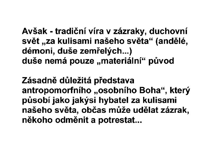 Myslím, že zbude přinejmenším: - víra ve smysluplný řád světa, který někam směřuje, - víra ve smysl individuálního života, - víra v etické principy, které jsou zásadní součástí tohoto smysluplného řádu světa, což není zase tak málo…