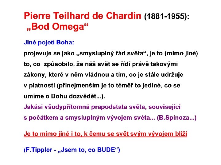 Pierre Teilhard de Chardin (1881 -1955) Paleontolog, katolický kněz (jezuita), konflikt s oficiální církevní doktrinou