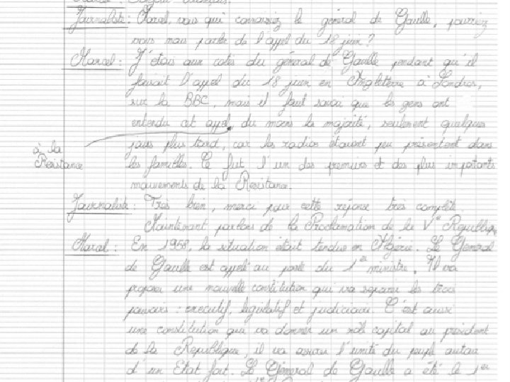 Un seul élève écrit , peu d’originalité dans l’interview prélèvement dans les documents des éléments attendus …cela ressemble à une biographie résumée.