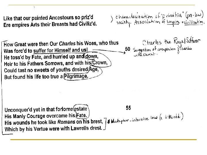 Implications and details worth further discussion n n Christ and Augustus Caesar were linked through Christian interpretation of Virgil’s 4 th Eclogue. Augustus was hailed by Virgil as a bringer of peace. q Dryden gives Charles II a place in that lineage, making him a new Augustus. David was a forefather of Christ (Jesus was born of the House of David). And David was chosen king by God anointed by God’s prophet, Samuel. q Dryden associates Charles II with that lineage as well by calling him David. Dryden thus associates Charles with a divinely appointed monarchy. Exactly what was the source of the British monarch’s sovereignty or power continued to be a point of controversy.