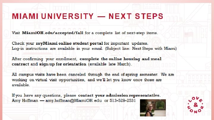 The University of Louisville You’re In! Now What? Make sure to visit the First Time Freshman Guide to get more info and clickable links for all the below! ● ● Accept Your Offer of Admission and Pay Your Enrollment Deposit via Your New Cards Gateway Apply for Housing via the Housing Website If You Have Not Already Done So! Submit Your Orientation Fee and Sign Up for Orientation (Overnight, 2 -Day & 1 -Night) on Your New Cards Gateway Taking the ACT/SAT Again or Raised Your GPA to become Scholarship Eligible? Send Us Your NEW Test Scores or Updated Transcript to Receive an Automatic Scholarship by August 1. Still unsure? I’m here to help! E: kevin. buckley. 1@louisville. edu T: 502 -233 -7842 Twitter: @Uof. LKevin Virtual Campus Visits are About to Go Live! Keep Checking Your Emails for More Information to be Sent to You!
