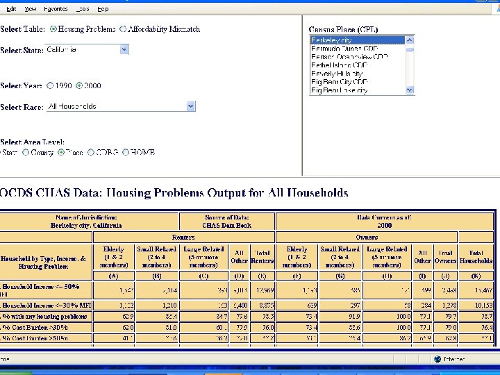 State of the Cities n Housing Problems Table u 1990 Data t All Households, White-nh, Black-nh, Hispanic u 2000 Data t All Households, White-nh, Black-nh, Hispanic, Asian-nh, Native American-nh, Pacific Islander-nh, Mobility and Self-Care Limitation