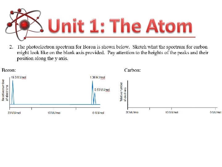 A sample of Boron is analyzed Percent abundance The Data: Mass/charge ratio Most of the time the charge is +1, so this is just the mass