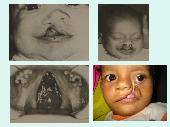 • • • 1. 2. 3. 4. 5. 6. There is often a history of clefts within a family the mode of inheritance is not simple Many enviromental insults to the embryo infectious diseases corticosteroids mechanical and chemical insults alkohol drugs X-rays can produce clefts in animals but whether these are of any significance in human population is uncertain.