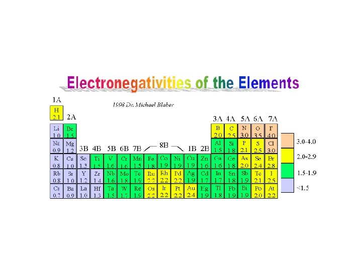 Bond Polarity and Electronegativity • The electron pairs shared between two atoms are not necessarily shared equally – Two extreme examples • In Cl 2 the shared electron pairs is shared equally • In Na. Cl the 3 s electron is stripped from the Na atom and is incorporated into the electronic structure of the Cl atom - and the compound is most accurately described as consisting of individual Na+ and Cl- ions – For most covalent substances, their bond character falls between these two extremes