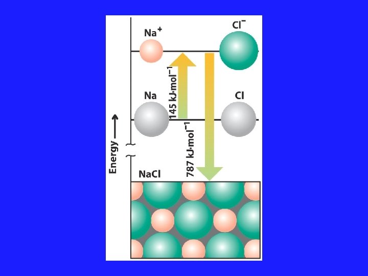 Understanding Ionic Bonds Na+ (g) + Cl- (g) --> Na. Cl (s) energy released = 787 k. J/mole • To form one mole of Na. Cl from one mole of sodium ions and one mole of chlorine ions, 787 k. J of energy is released – The crystallization process releases energy!