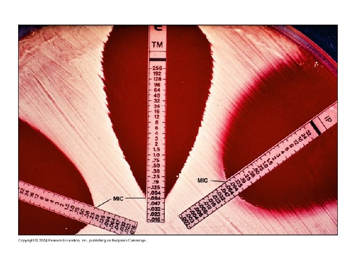 Susceptibility testing • done to determine which drugs might control an infection • several methods. This is the Kirby-Bauer disk-diffusion method: