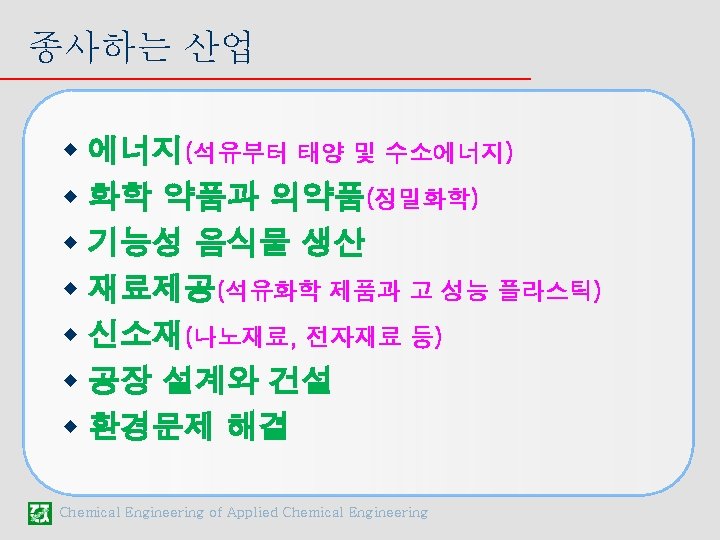 진로 – 여러 분야의 중심 Chemical Engineering of Applied Chemical Engineering