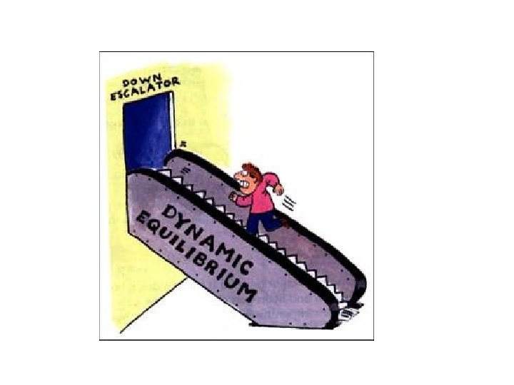 DYNAMIC EQUILIBRIUM IMPORTANT REMINDERS • a reversible chemical reaction is a dynamic process • everything may appear stationary but the reactions are moving both ways • the position of equilibrium can be varied by changing certain conditions Trying to get up a “down” escalator gives an excellent idea of a non-chemical situation involving dynamic equilibrium. Summary When a chemical equilibrium is established. . . • both the reactants and the products are present at all times • the equilibrium can be approached from either side • the reaction is dynamic - it is moving forwards and backwards • the concentrations of reactants and products remain constant