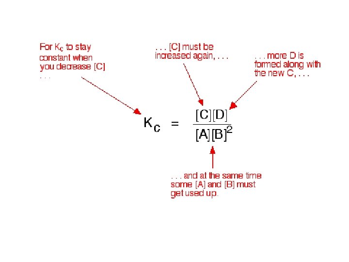 THE EQUILIBRIUM LAW “If the concentrations of all the substances present at equilibrium are raised to the power of the number of moles they appear in the equation, the product of the concentrations of the products divided by the product of the concentrations of the reactants is a constant, provided the temperature remains constant” for an equilibrium reaction of the form. . . a. A + b. B then (at constant temperature) where Kc c. C + d. D [C]c. [D]d = a constant, (Kc) [A]a. [B]b [ ] denotes the equilibrium concentration in mol/L is known as the Equilibrium Constant VALUE OF Kc AFFECTED by a change of temperature NOT AFFECTED by a change in concentration of reactants or products a change of pressure adding a catalyst