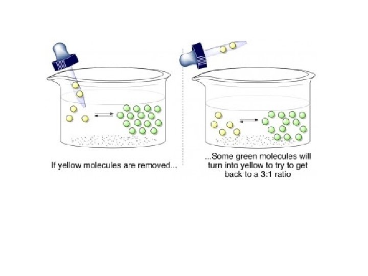 Le Chateliers Principle -Experiments If a stress is applied to a system at equilibrium, the system adjusts to relieve the stress Fe. Cl 3 yellow + CNS- Fe(CNS)2 - + 3 Cl- red 1. Add iron (III) chloride and potassium thiocyanate, note colour and explain why 2. Add HCL, note colour change and explain why 3. Add Iron (III) chloride, note colour change and explain why