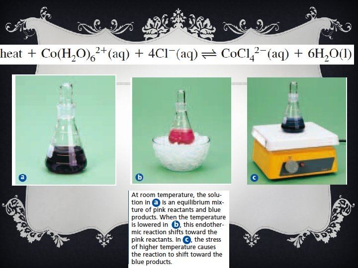 FACTORS AFFECTING CHEMICAL EQUILIBRIUM v I will describe how various factors affect chemical equilibrium. v I will explain how Le Chatelier’s Principle applies to equilibrium systems.