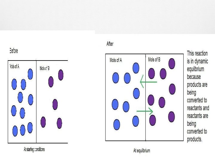 What is equilibrium? • Chemical reaction stops BEFORE the limiting reactant is consumed. • All of the reactants are not COMPLETELY converted to products. o Amount of reactant converting to product = converting back to reactant amount of product • Represented in a chemical reaction by arrows pointing in BOTH directions. ( ) • Reactant and product concentrations are STABLE