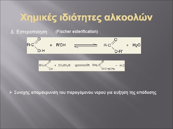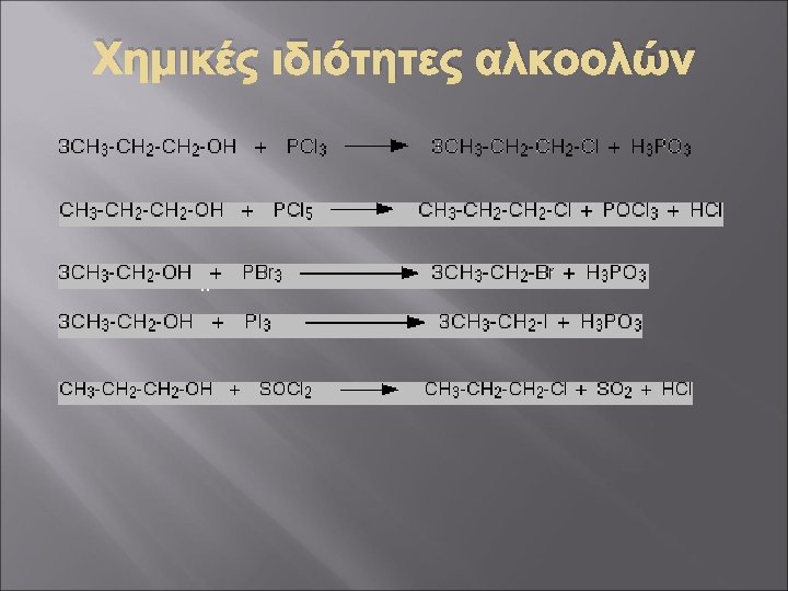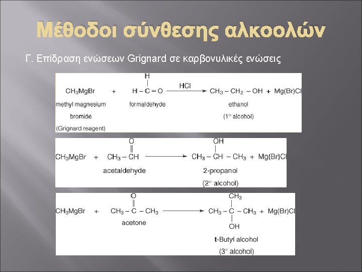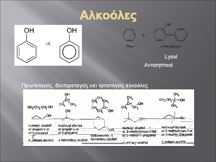 Αλκοόλες Chemical Formula IUPAC Name Common Name Monohydric alcohols CH 3 OH Methanol Wood alcohol C 2 H 5 OH Ethanol Grain alcohol C 3 H 7 OH Isopropyl alcohol Rubbing alcohol C 5 H 11 OH Pentanol Amyl alcohol Polyhydric alcohols C 2 H 4(OH)2 Ethane-1 , 2 -diol Ethylene glycol C 3 H 5(OH)3 Propane-1 , 2, 3 -triol Glycerin C 5 H 7(OH)5 Pentane-1 , 2, 3, 4, 5 -pentol Xylitol C 6 H 8(OH)6 Hexane-1 , 2, 3, 4, 5, 6 -hexol Mannitol, Sorbitol