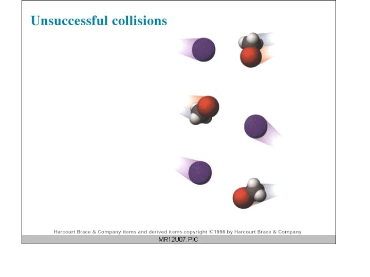 Collision Rate Model Three conditions must be met at the molecular level if a reaction is to occur: • the molecules must collide; • they must be positioned so that the reacting groups are together in a transition state between reactants and products; • and the collision must have enough energy to break bonds, form the transition state and convert it into products.