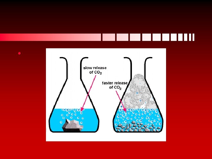 Concentration • Eg. a splint of wood glows brighter in highly concentrated oxygen than in normal air, with a lower concentration of oxygen Two antacid tablets will neutralize a given amount of acid faster than one tablet will. • Higher concentrations of acid in rain erode marble faster than lower concentrations. • Fire extinguishers “remove” oxygen by smothering a fire, inhibiting combustion.