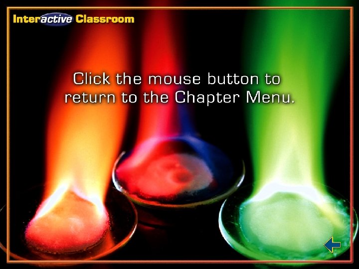 Click any of the background top tabs to display the respective folder. Within the Chapter Outline, clicking a section tab on the right side of the screen will bring you to the first slide in each respective section. Simple navigation buttons will allow you to progress to the next slide or the previous slide. The Chapter Resources Menu will allow you to access chapter specific resources from the Chapter Menu or any Chapter Outline slide. From within any feature, click the Resources tab to return to this slide. The “Return” button will allow you to return to the slide that you were viewing when you clicked either the Resources or Help tab. To exit the presentation, click the Exit button on the Chapter Menu slide or hit Escape [Esc] on your keyboards while viewing any Chapter Outline slide.