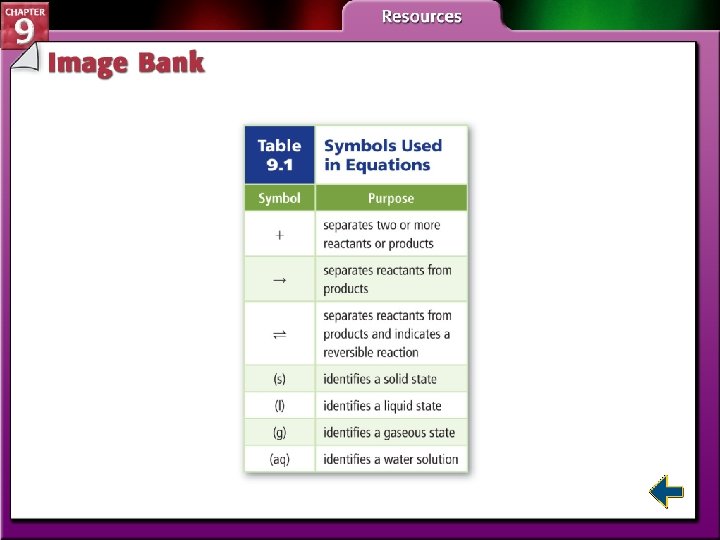 Chemical Reactions Section 9. 1 Reactions and Equations Section 9. 2 Classifying Chemical Reactions Section 9. 3 Reactions in Aqueous Solutions Click a hyperlink or folder tab to view the corresponding slides. Exit