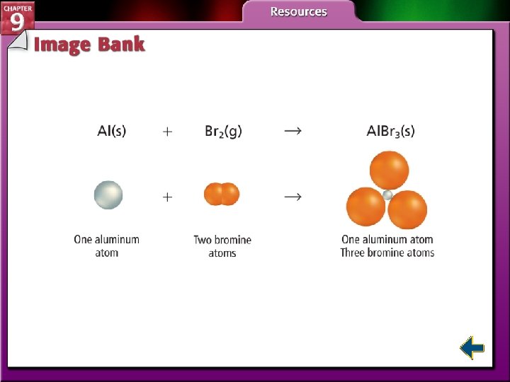 Representing Chemical Reactions (cont. ) • In word equations, aluminum(s) + bromine(l) → aluminum bromide(s) reads as “aluminum and bromine react to produce aluminum bromide”. • Skeleton equations use symbols/formulas to represent the reactants and products. Al(s) + Br(l) → Al. Br 3(s) • Skeleton equations lack information about how many atoms are involved in the reaction.