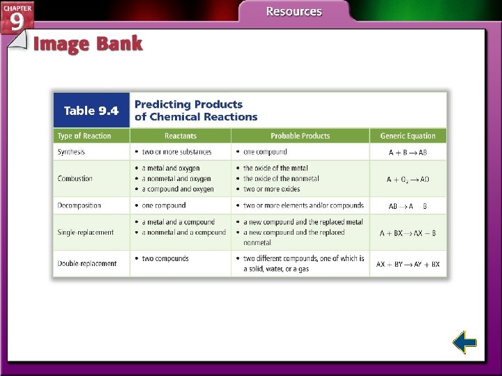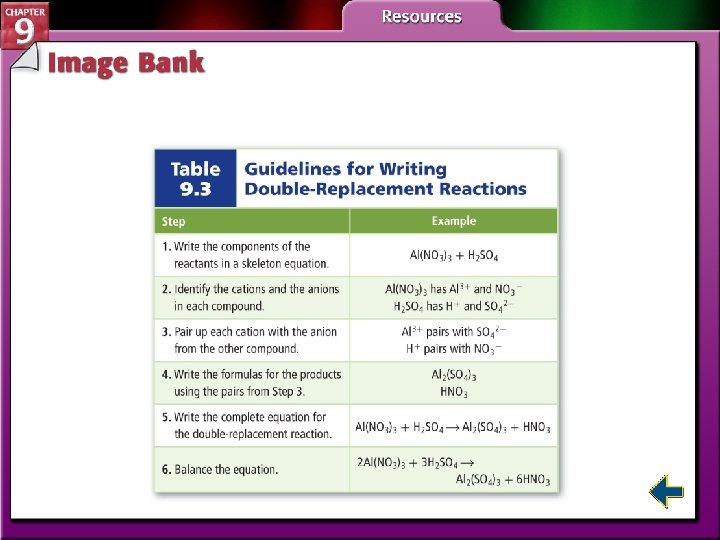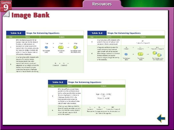 Table 9. 2 Steps for Balancing Equations Figure 9. 15 The Forming of a Precipitate Table 9. 4 Types of Chemical Reactions