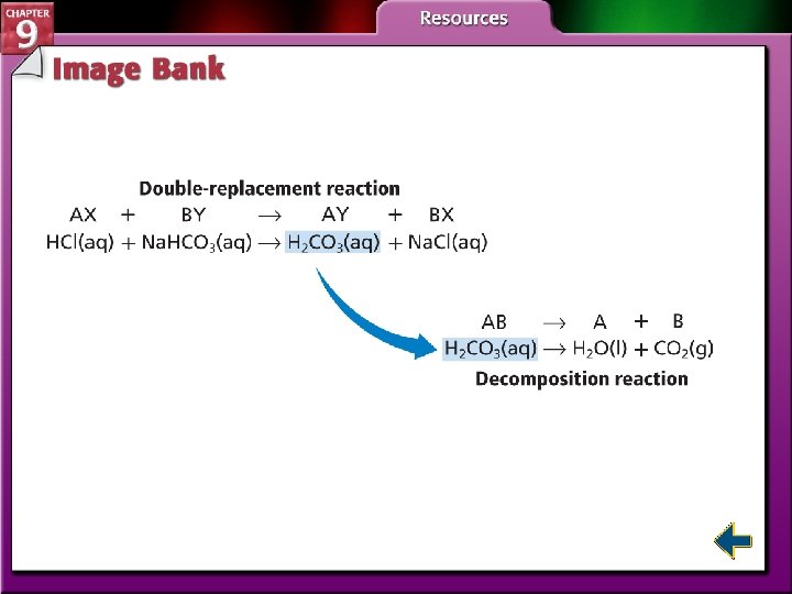 Types of Reactions in Aqueous Solutions (cont. ) • Another example is mixing vinegar and baking soda, which produces carbon dioxide gas. HCl(aq) + Na. HCO 3(aq) → H 2 CO 3(aq) + Na. Cl(aq) • H 2 CO 3(aq) decomposes immediately. H 2 CO 3(aq) → H 2 O(l) + CO 2(g)